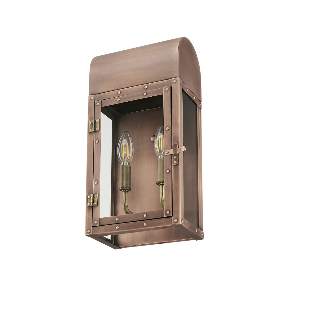 16.75 in. 2-Light Antique Copper Outdoor Wall Lantern With Clear Glass Panes