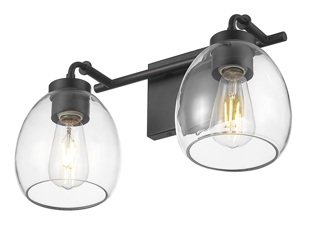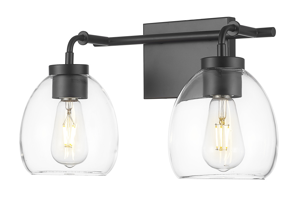 Dawes 16 in. Matte Black 2-Light Vanity With Clear Glass Globes