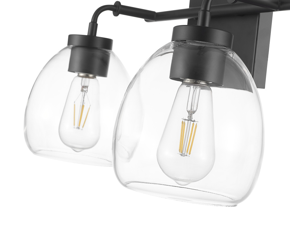 Dawes 24 in. Matte Black 3-Light Vanity With Clear Glass Globes