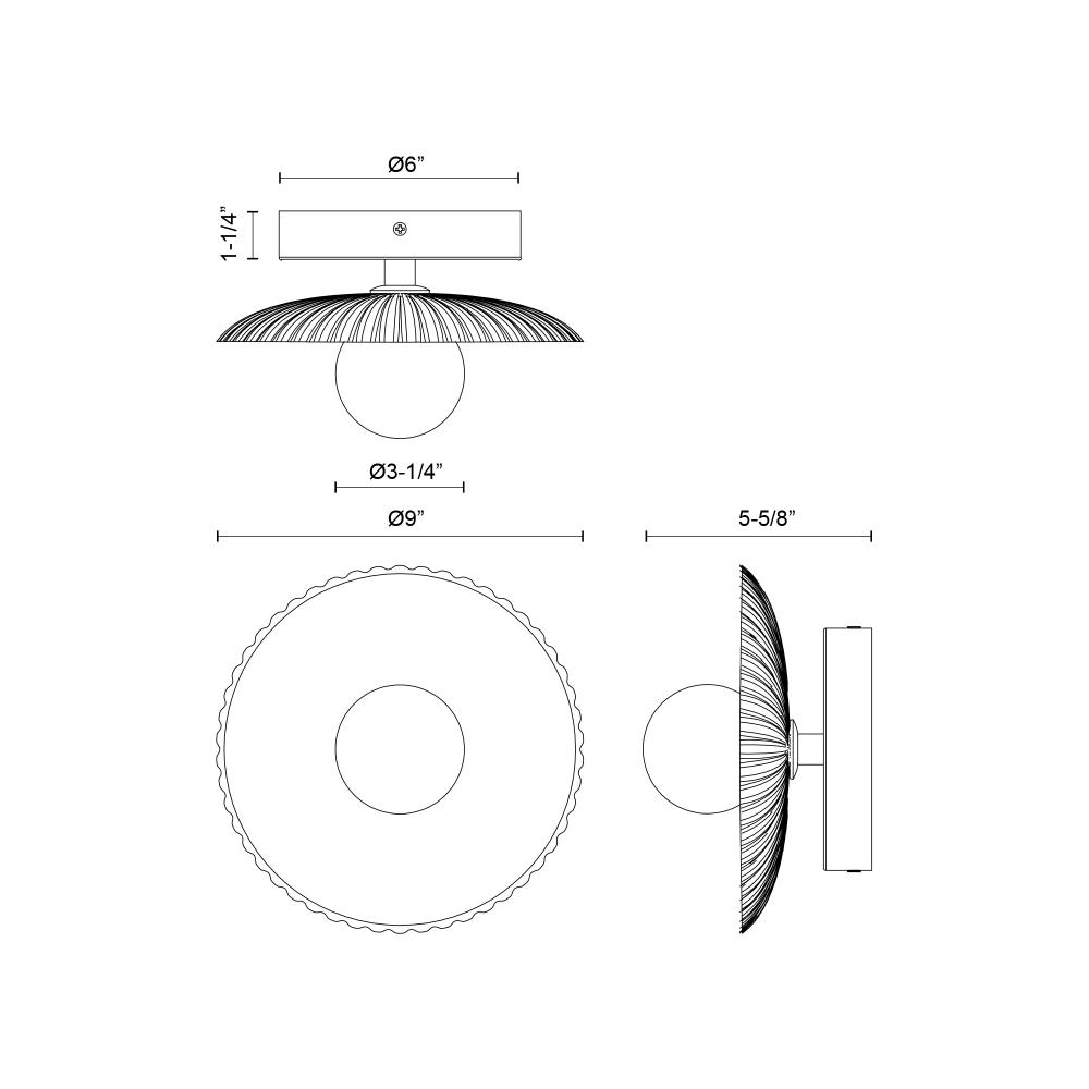 WV417510MBCR-UNV - Hera 9-in Matte Black/Clear Ribbed Glass LED Wall/Vanity