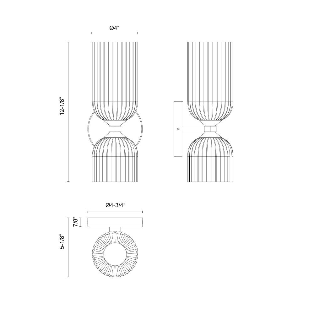 WV442612BGCR - Nelly 12-in Brushed Gold/Clear Ribbed Glass Socket Wall/Vanity Light