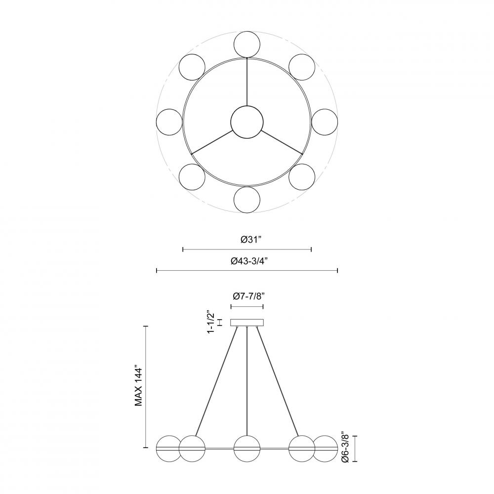 CH302008MBBG-UNV - Tagliato 44-in Matte Black/Brushed Gold LED Chandeliers