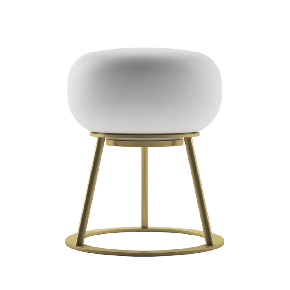 TRIPOD - where sculptural design meets luminous artistry. This statement piece features a striking white oval-shaped glass top delicately poised upon a refined metal tripod frame, creating an architectural silhouette that commands attention. The removable milky glass diffuser distributes light with exceptional evenness, eliminating harsh glare while bathing your space in a gentle, ambient glow. The precision-engineered tripod frame not only provides visual intrigue but offers remarkable stability for this portable indoor lighting solution. At Kibün by Bulbrite, we've leveraged over 50 years of lighting expertise to create a truly portable lighting solution. TRIPOD frees your space from the constraints of cords and outlets, offering remarkable flexibility for both indoor and outdoor settings. Experience customizable brilliance with three illumination levels - from subtle 60-lumen ambiance to brilliant 300-lumen task lighting. The 2700K warm white temperature and exceptional 90+ CRI ensures colors appear rich and true to life under TRIPOD’s gentle radiance. With substantial dimensions of 12" diameter and 14.75" height, TRIPOD makes a confident design statement at 11.2 pounds. Select from two timeless finishes - sophisticated Black or luxurious Brushed Brass - to complement your interior aesthetic.