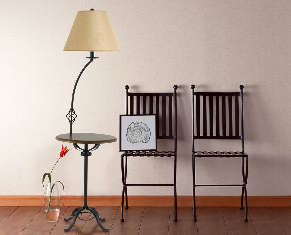 150W 3Way Iron Fl Lp W/Wood Tray Tb