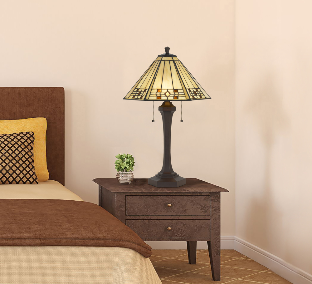 BO-3107TB - 60W x 2 metal/resin Tiffany table lamp with pull chain switches