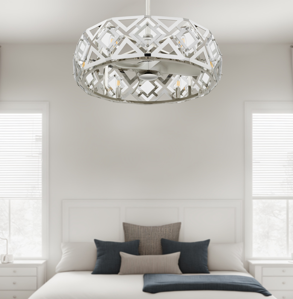 CF-1008 - Remote controlled dimmable 8W LED E12 x 6. 6 speed Bari Ultra Quiet Fan light