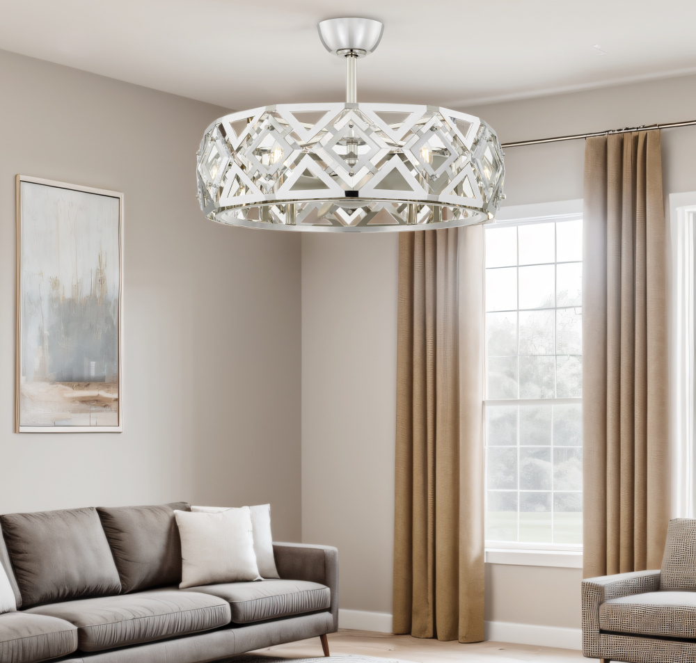 Remote controlled dimmable 8W LED E12 x 6. 6 speed Bari Ultra Quiet Fan light