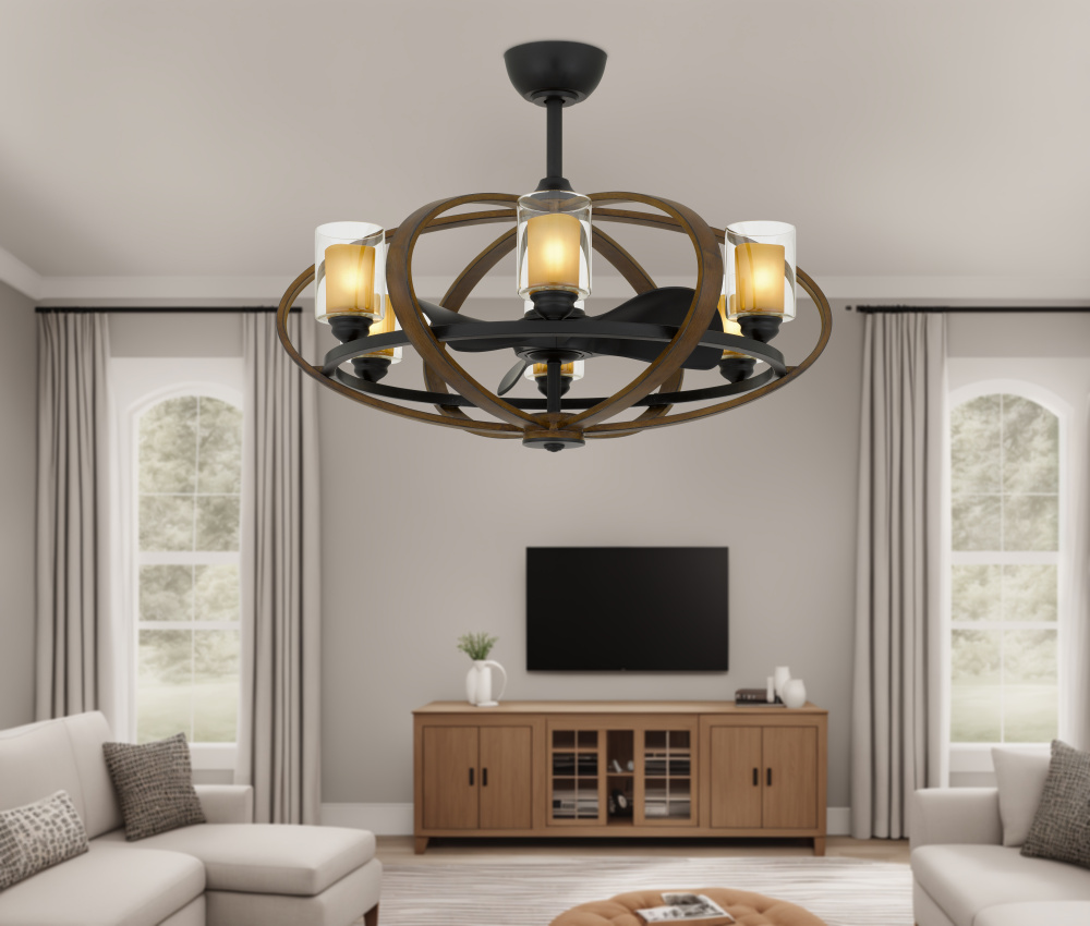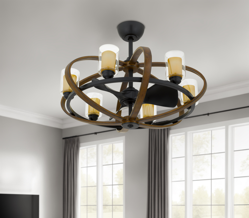 CF-1006 - Remote controlled dimmable 8W LED E12 x 6. 6 speed Summervile Ultra Quiet Fan light