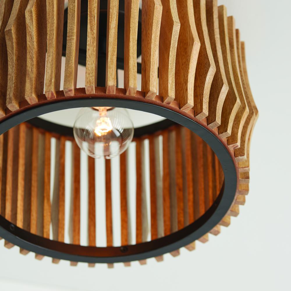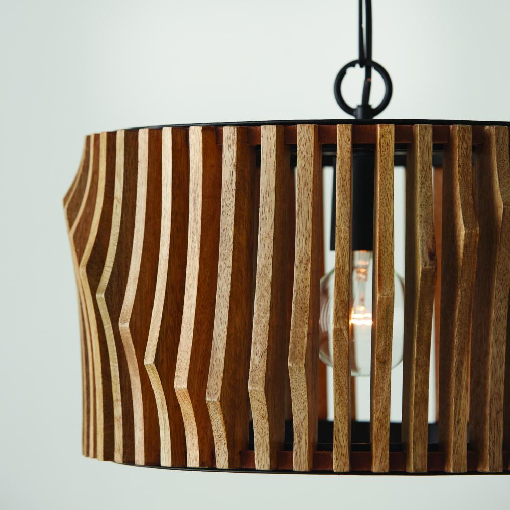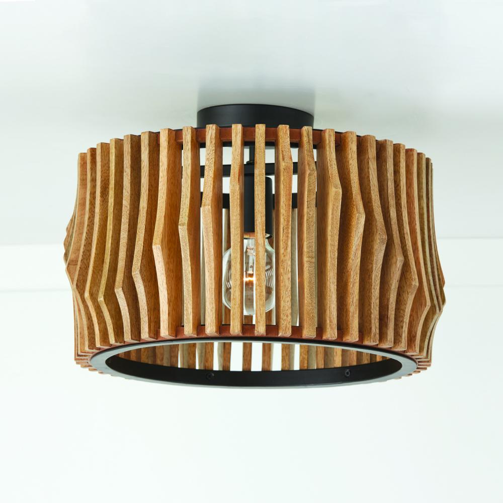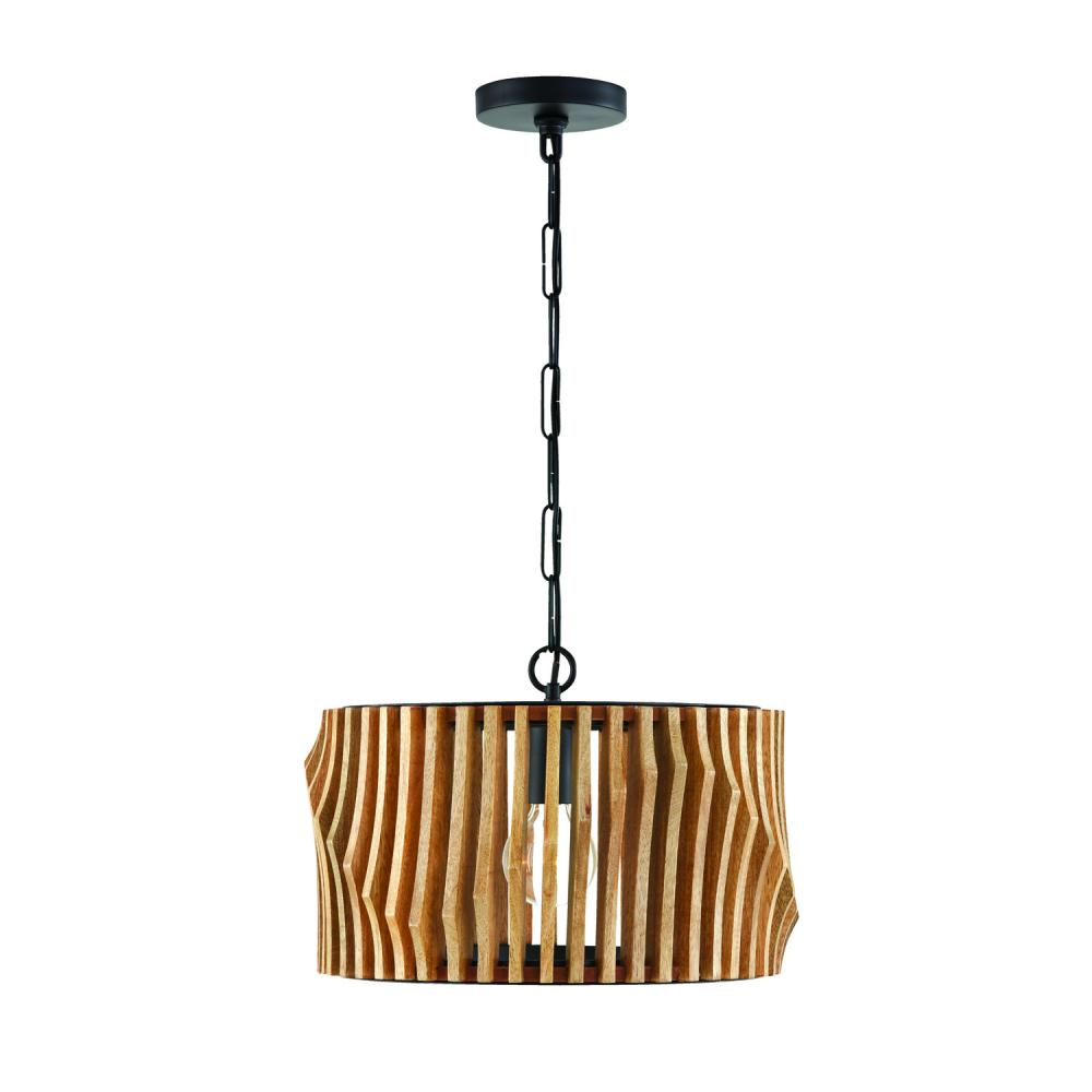 16"W x 10.75"H 3-Light Dual Mount Pendant or Semi-Flush in Handcrafted Light-Stained Wood and Matte Black