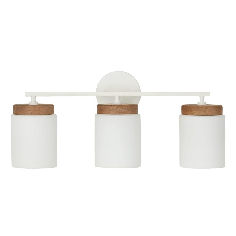 3-Light Cylindrical Vanity in White with Mango Wood and Soft White Glass