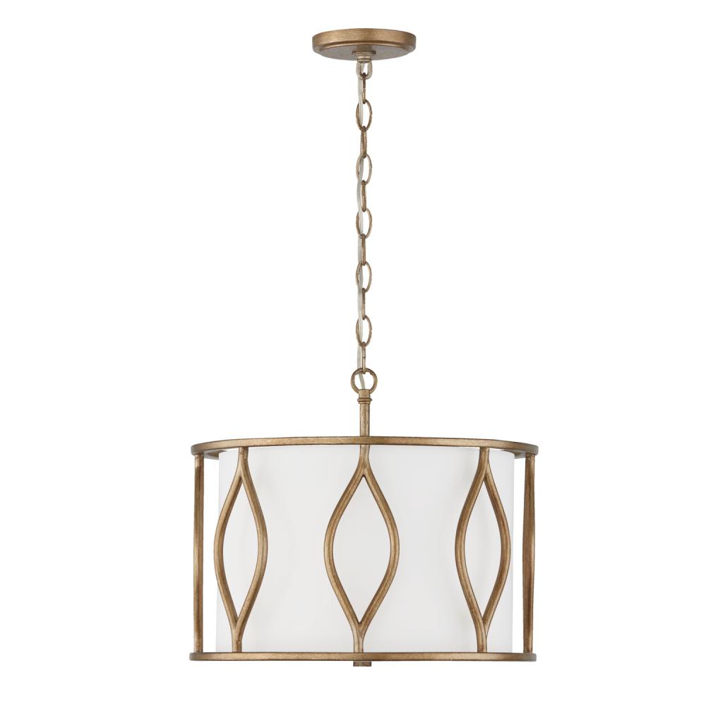 252531ML - 3-Light Semi-Flush Drum Pendant in Mystic Luster with White Fabric Shade