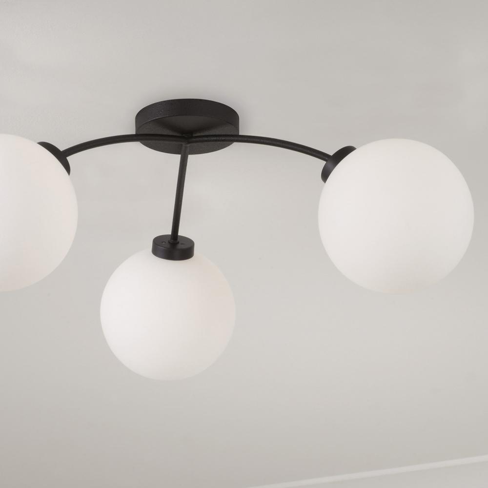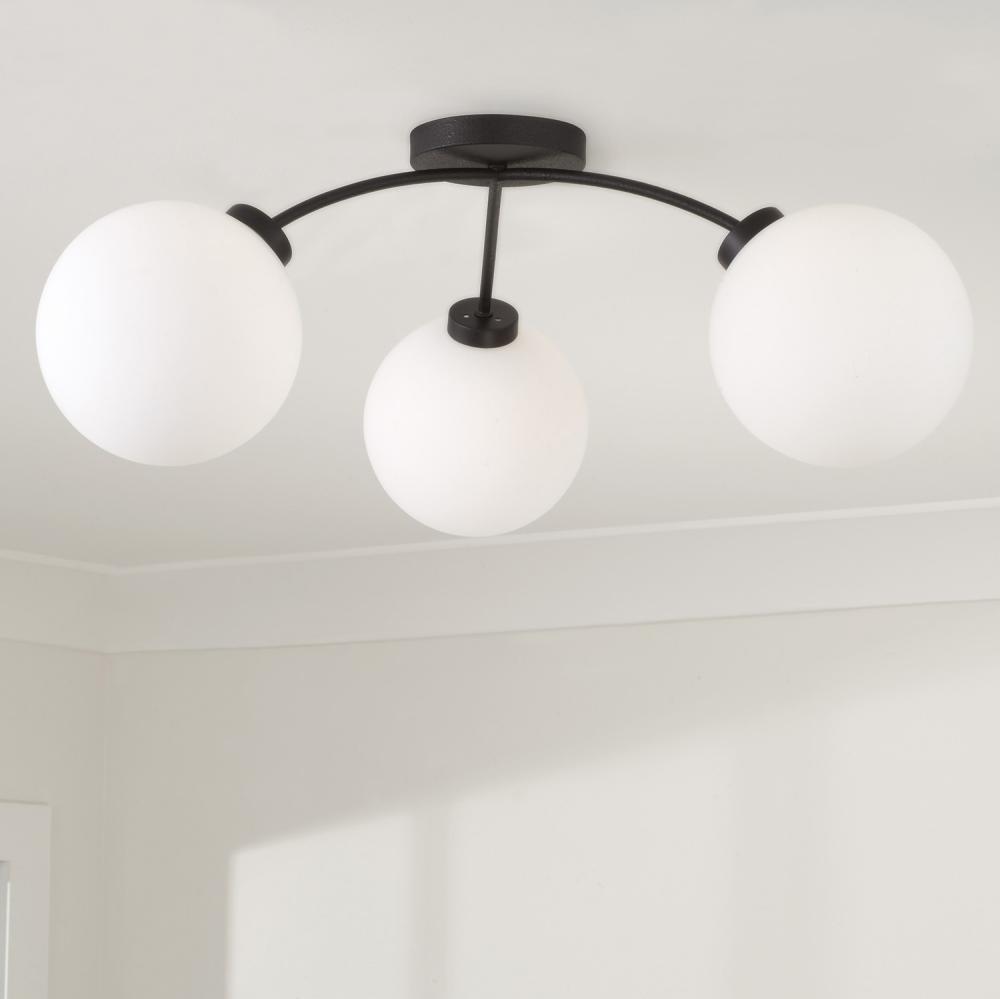 3-Light Semi Flush in Matte Black with Soft White Glass Globes