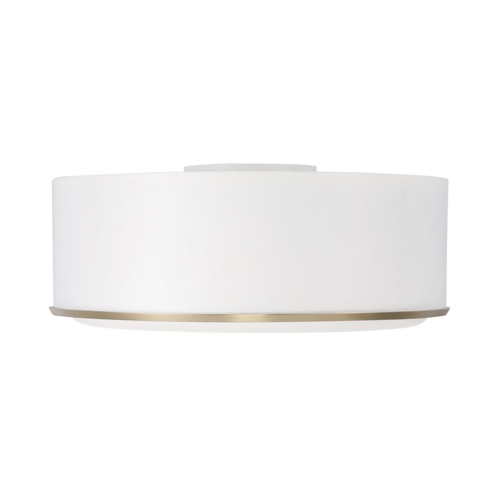 DETAILS: The almost-flush design features a Matte White metal band atop a Matte Brass ring, complete with a white glass diffuser for simple, sophisticated ambiance.