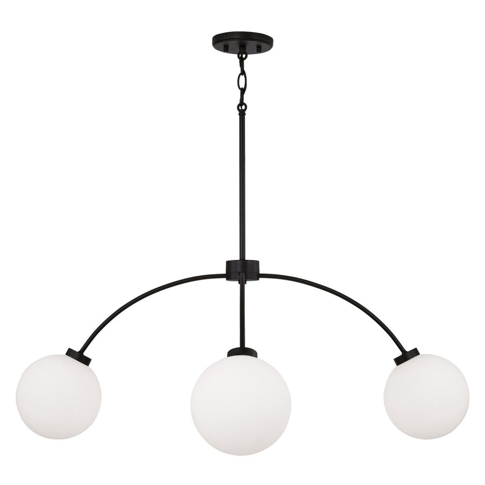 DETAILS: Soft White glass globes paired with the Black Iron finish brings high contrast to the curved silhouette.