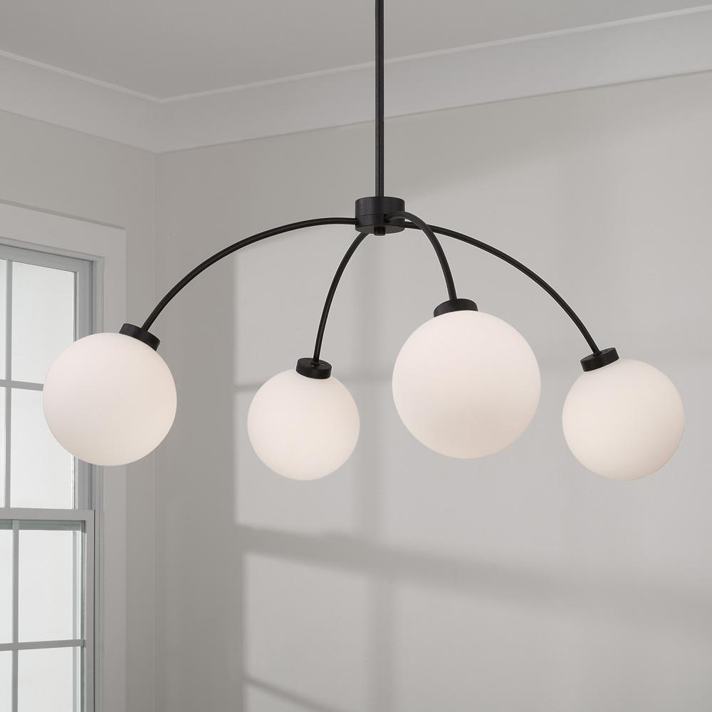 4-Light Chandelier in Matte Black with Soft White Glass Globes