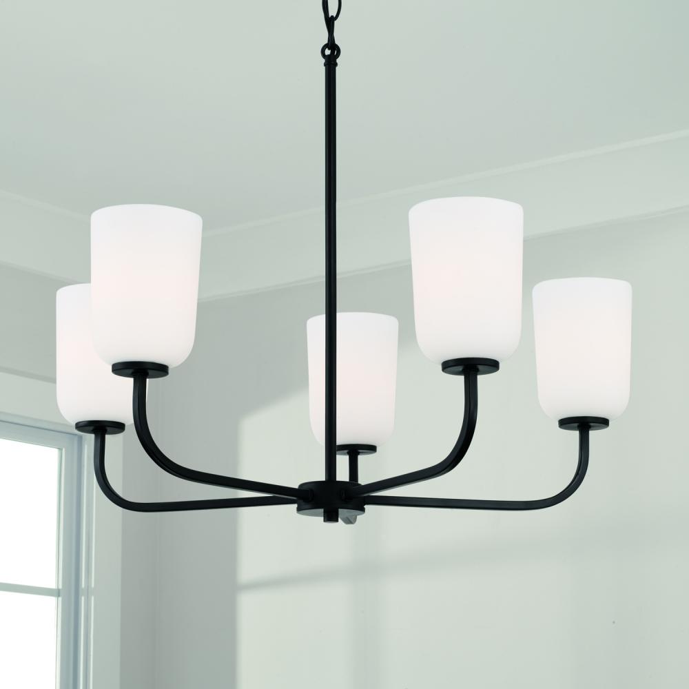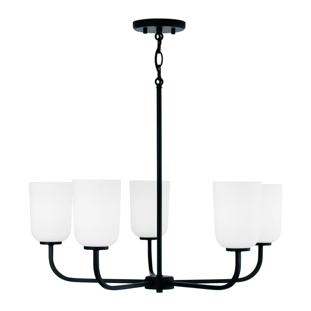 26"W x 19.75"H 5-Light Chandelier in Matte Black with Soft White Glass