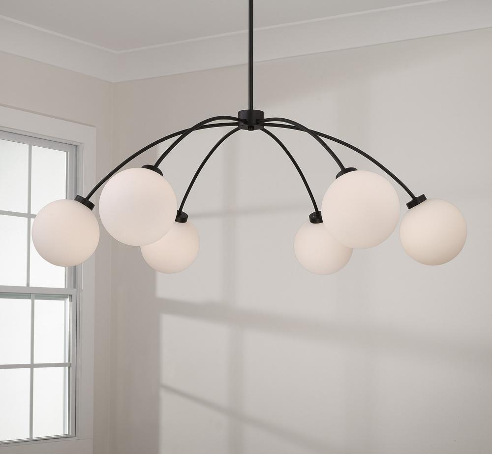 6-Light Chandelier in Matte Black with Soft White Glass Globes