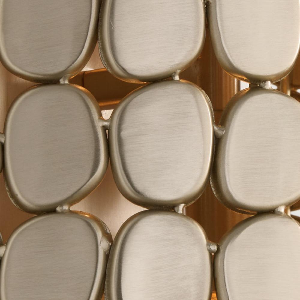 Invite captivating shimmer to any space with the Eliana Sconce. Crafted in a tiered cylindrical silhouette, the unique medallions alternate catching the light while teasing glimpses of illumination from within. The refined Champagne Brass finish creates elegant, dimensional shine from every angle.