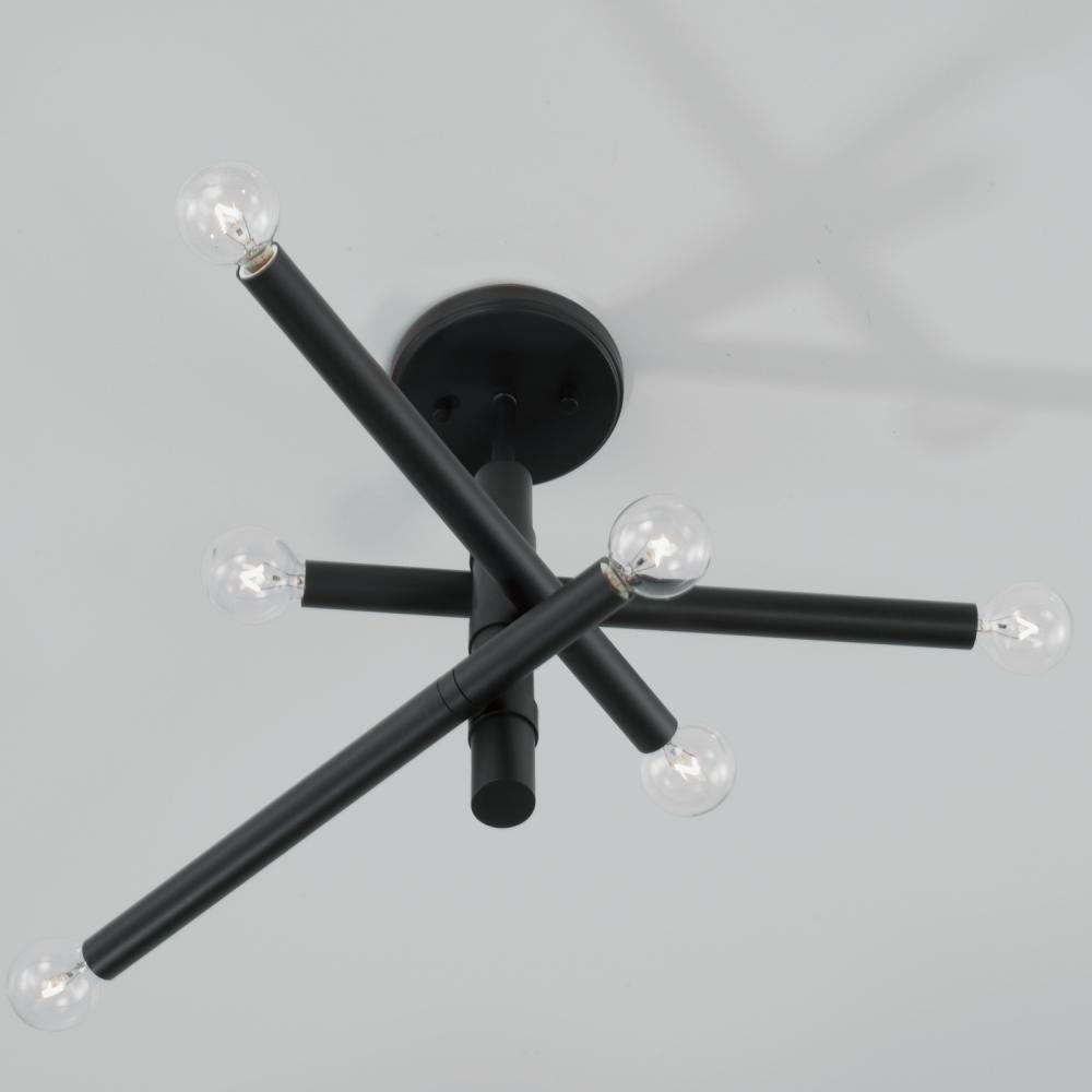 Defined by sleek lines and a modern form, the Zane Semi-Flush brings sophisticated sputnik style to any space. The neutral tone of the Matte Black finish punctuates this minimalist luminaire.