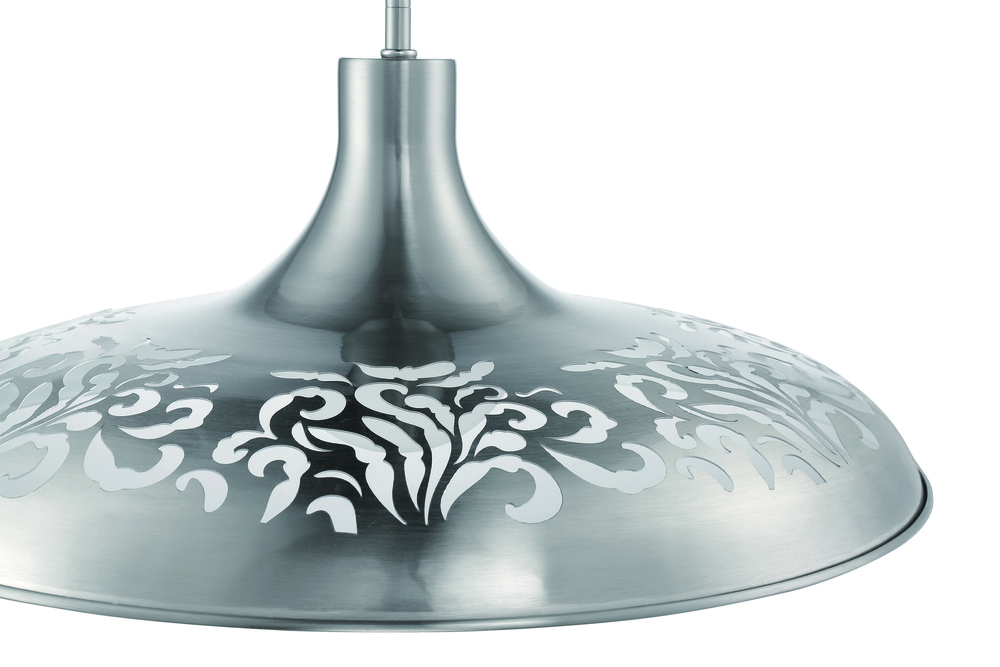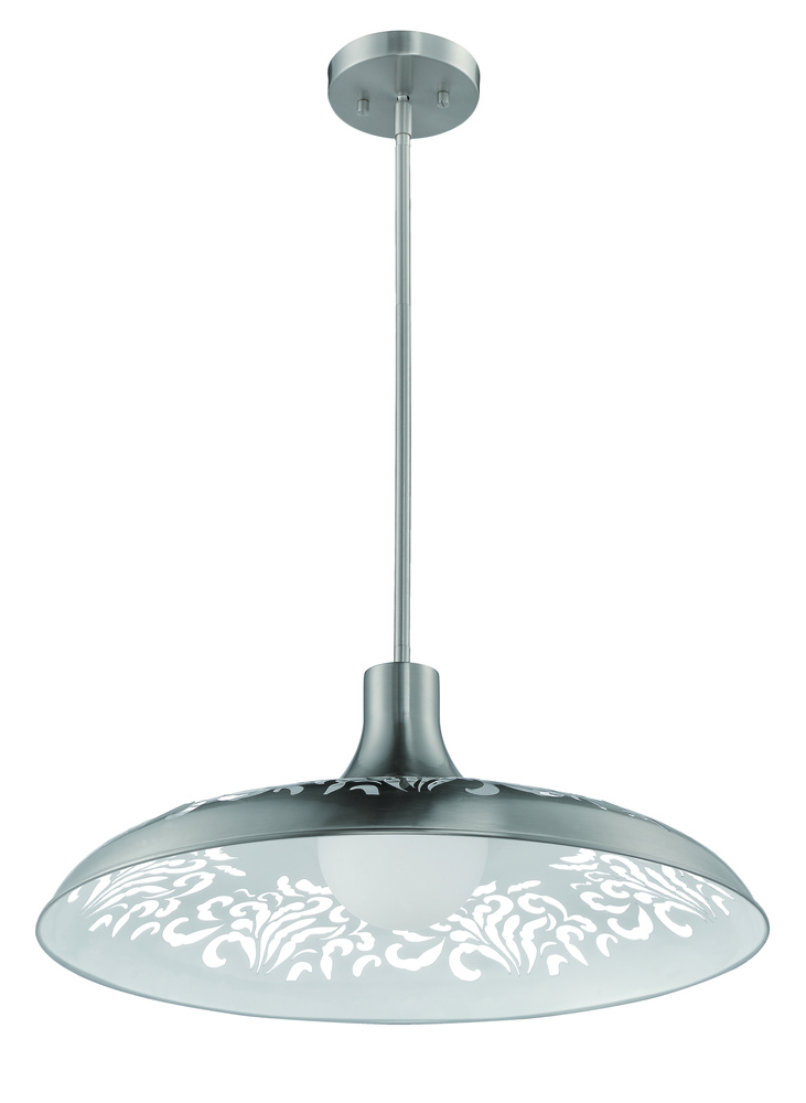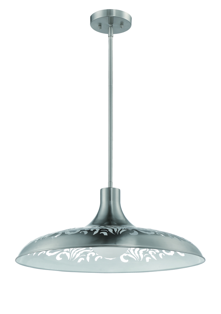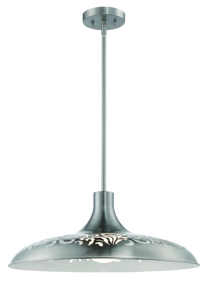 The Pocco 1 Light Pendant from Craftmade features patterned cut outs in the dome that allow the light to create playful shadows. Customize the height with included rods. Available in all brushed polished nickel or flat black with white interior.