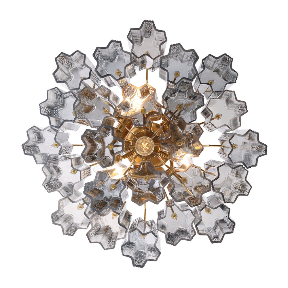 The captivating Addis Lighting Collection is a modern-day interpretation of the iconic mid-century Tronchi chandelier. Inspired by its predecessor's sleek lines and geometric shapes, the Addis features a polished Chrome or Aged Brass metal frame that exudes sophistication and style. Its unique design showcases transparent tiers of textured Tronchi glass tubes, forming a mesmerizing 5-point rounded star shape. Choose from a range of glass colors, including clear, amber, smoke, and white, or the stunning Autumn option, which features a captivating multicolor disposition of amber, clear, and smoke Tronchi glass. The Addis Lighting Collection offers various sizes and finishes, allowing you to find the perfect fit for your space while adding a touch of timeless elegance.