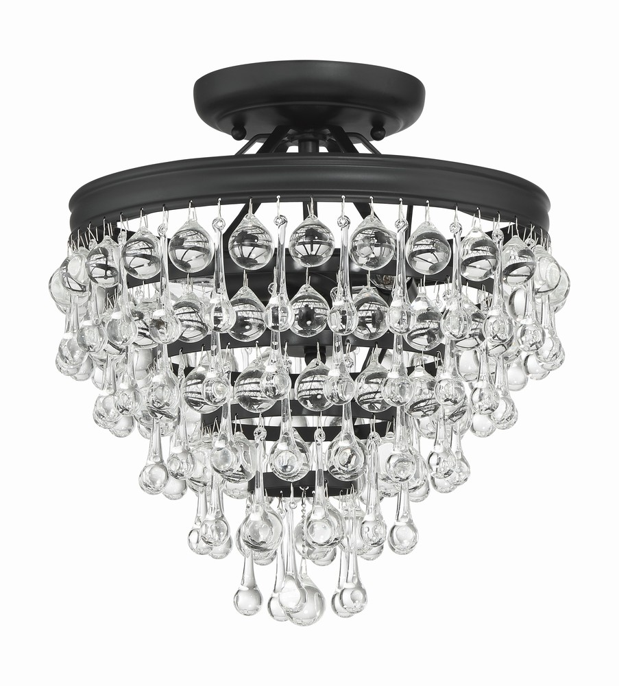 Calypso 3 Light Crystal Teardrop Matte Black Semi Flush Mount