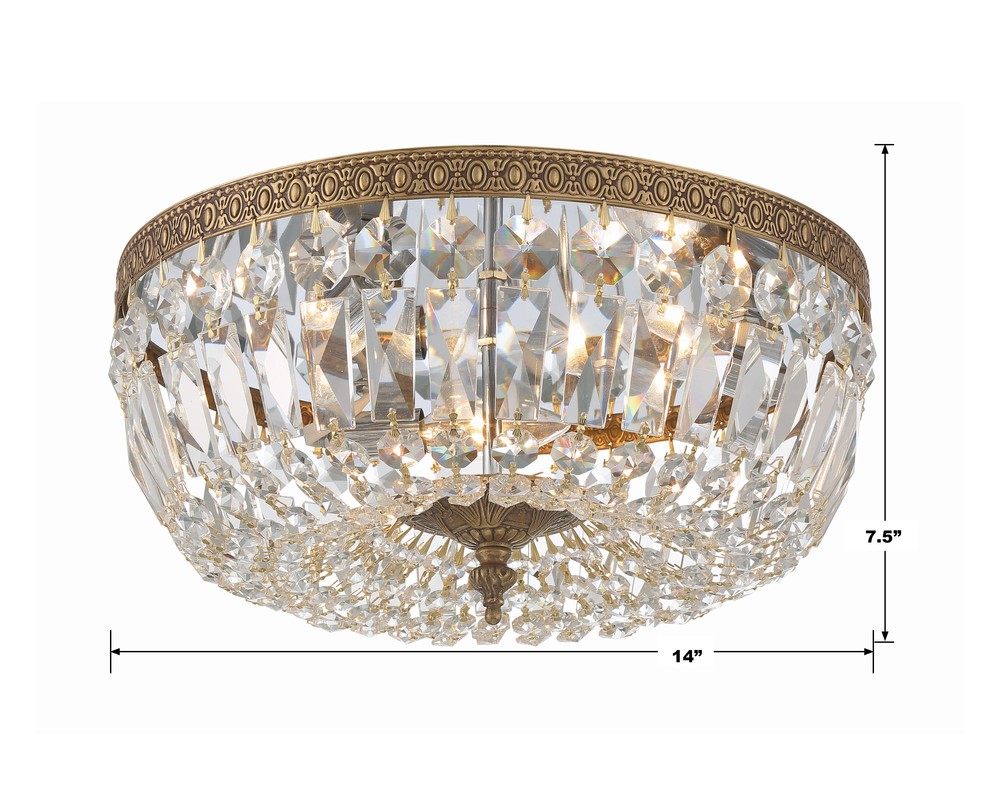 117-12-OB - Crystorama 3 Light Olde Brass Crystal Flush Mount
