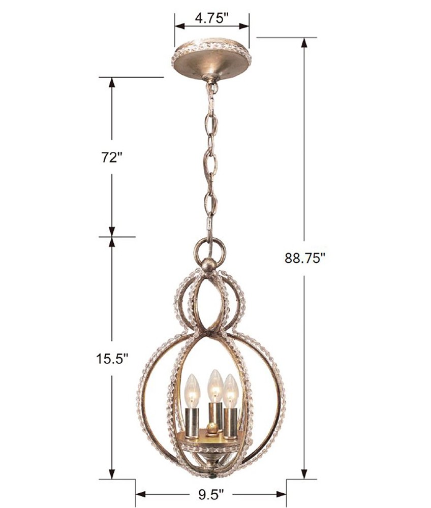 6760-DT - Garland 3 Light Crystal Bead Distressed Twilight Mini Pendant