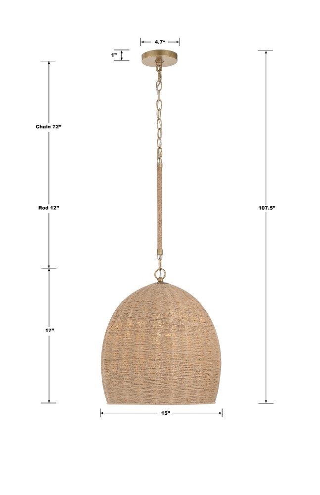 If cozy, paired-back, and relaxed style defines your home interior choices, the textural Jace pendant light is what you have been looking for. The natural warmth of organic Jute has a light and airy feeling that adds architectural interest to any space. The downward-facing rod is accented with wrapped Jute with a gold finish, creating a beautiful tone-on-tone look. This versatile collection seamlessly blends in modern, coastal, and even traditional styles.