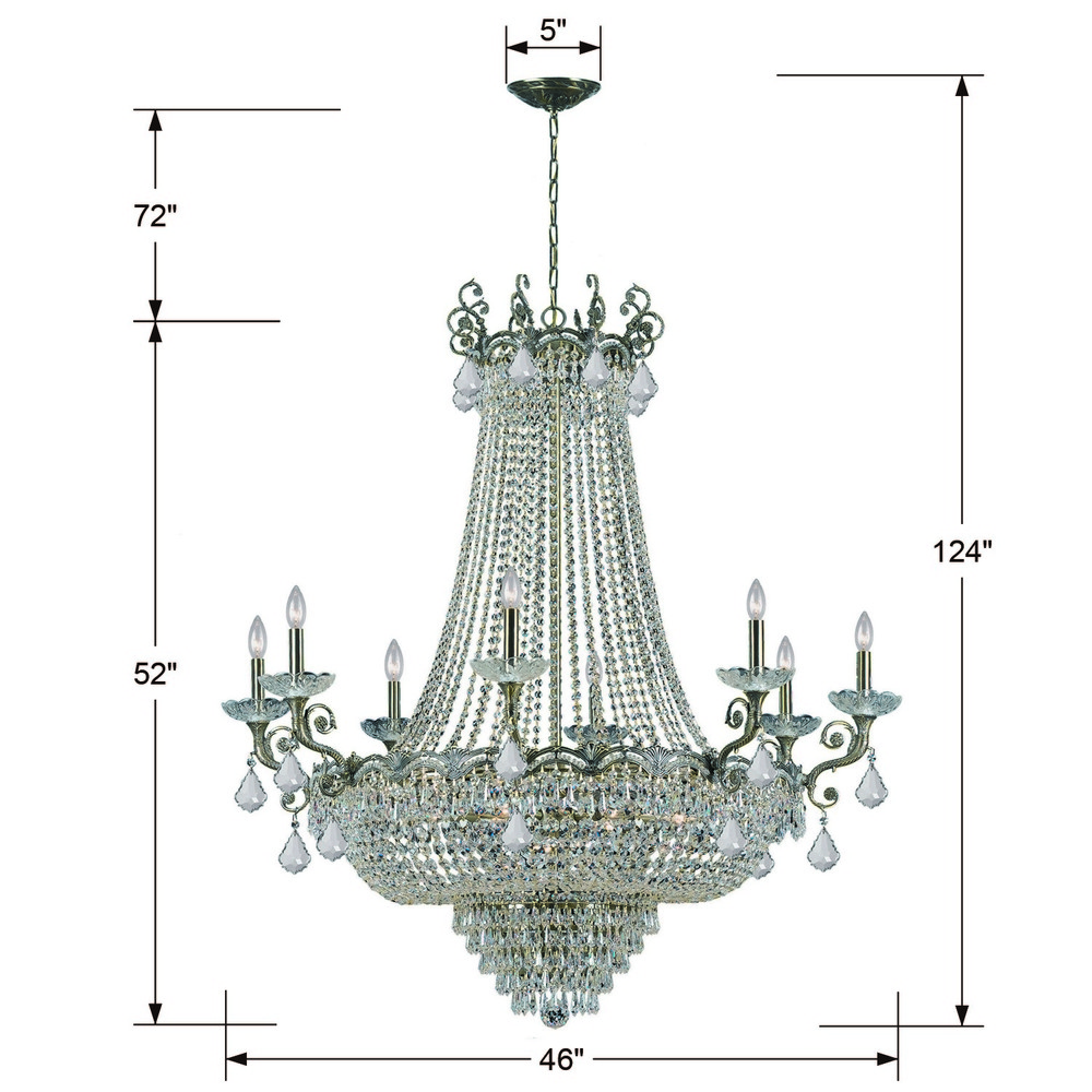 1488-HB-CL-MWP - Majestic 20 Light Hand Cut Crystal Historic Brass Chandelier