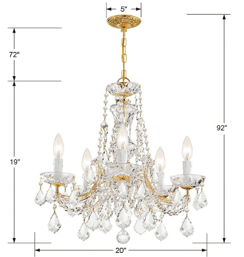 Maria Theresa 5 Light Hand Cut Crystal Gold Chandelier