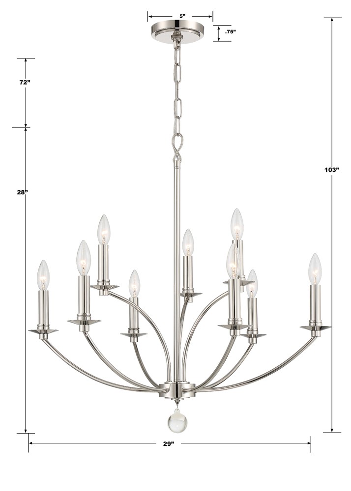 MIL-8009-PN - Mila 9 Light Polished Nickel Chandelier