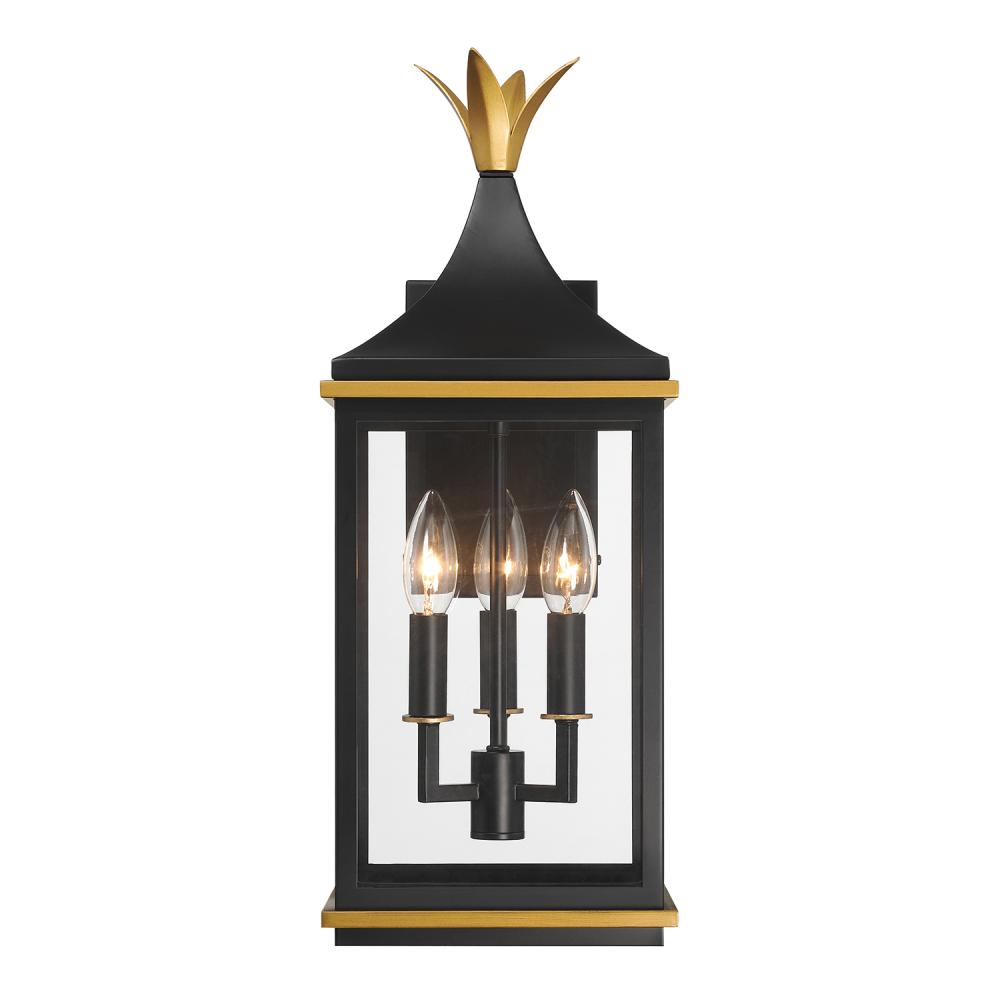 Simpson 3 Light Matte Black + Textured Gold Outdoor Sconce