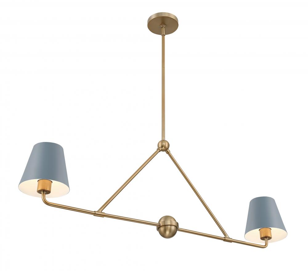 Xavier 2 Light Vibrant Gold + Blue Linear Chandelier