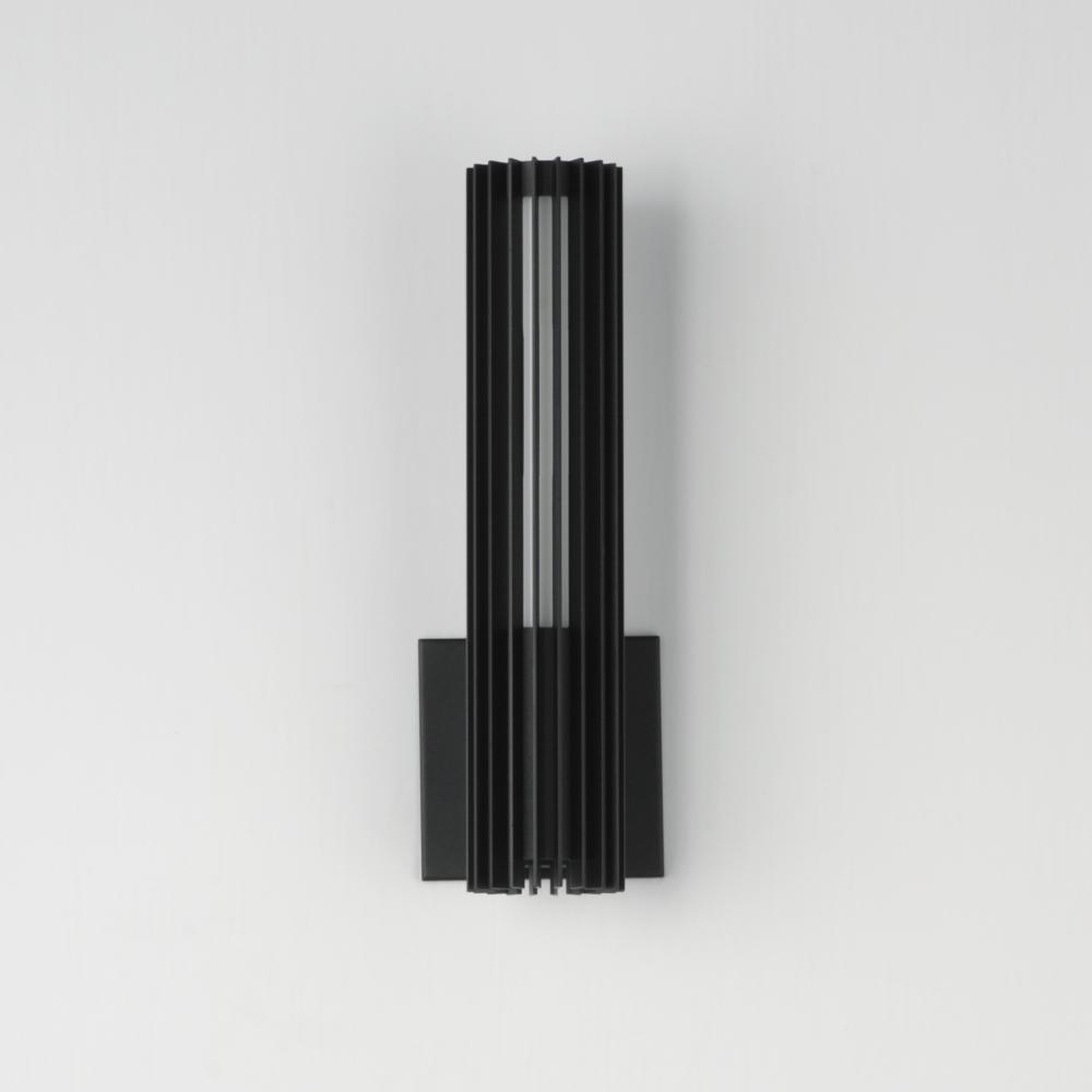 Vertical aluminum strands surround an acrylic LED tube that shines omnidirectional light filtered by the frame. The thin profile of the overall column extends less than 4" offering ADA compliant applications. Available in a variety of sconce sizes, the