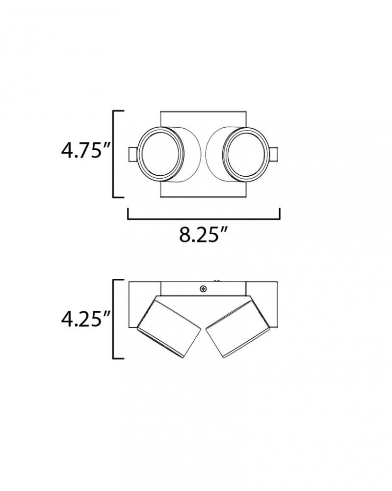 A modern matte black frame crafted with rectilinear tubing supports circular LED light modules. Designed to appear as if they are facing each other in an embrace, the modules create a harmonious and dynamic aesthetic. The two modules, positioned at opposit