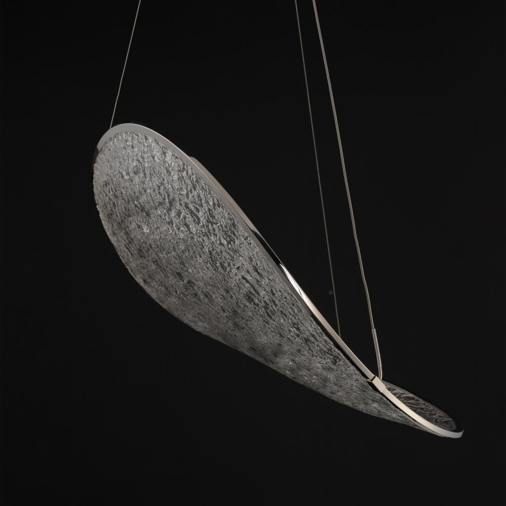 A triumph of scale, craft, and light, Moonscapes transforms celestial inspiration into a breathtaking installation. Monumental in form yet ethereal in presence, each irregularly shaped panel evokes the cratered terrain of the lunar surface with dramatic te