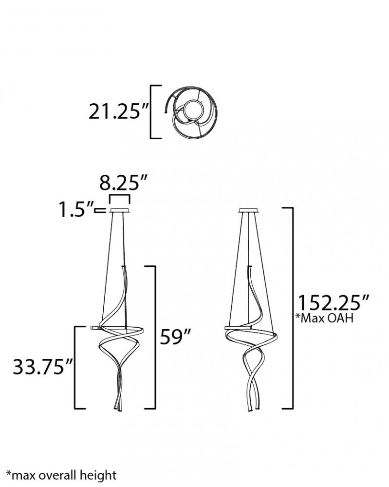 Spiraling sinews of LED tape light swirl in a snake like formation. Black aluminum channels are illuminated by strips of LED tape evenly diffused across a silicone lens. These sleek, modern designs, which come in two pendant sizes and a semi-flush mount,