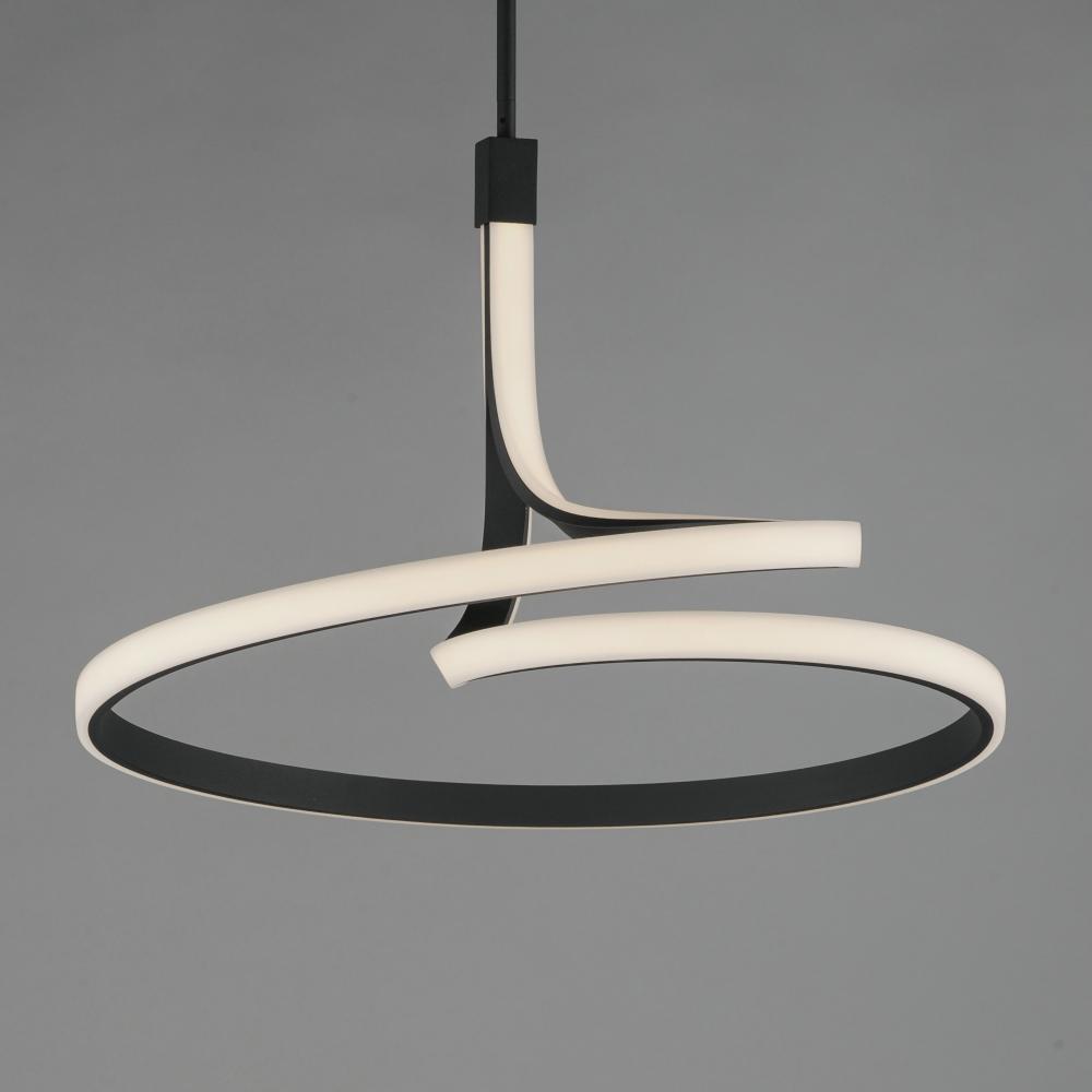 Spiraling sinews of LED tape light swirl in a snake like formation. Black aluminum channels are illuminated by strips of LED tape evenly diffused across a silicone lens. These sleek, modern designs, which come in two pendant sizes and a semi-flush mount,