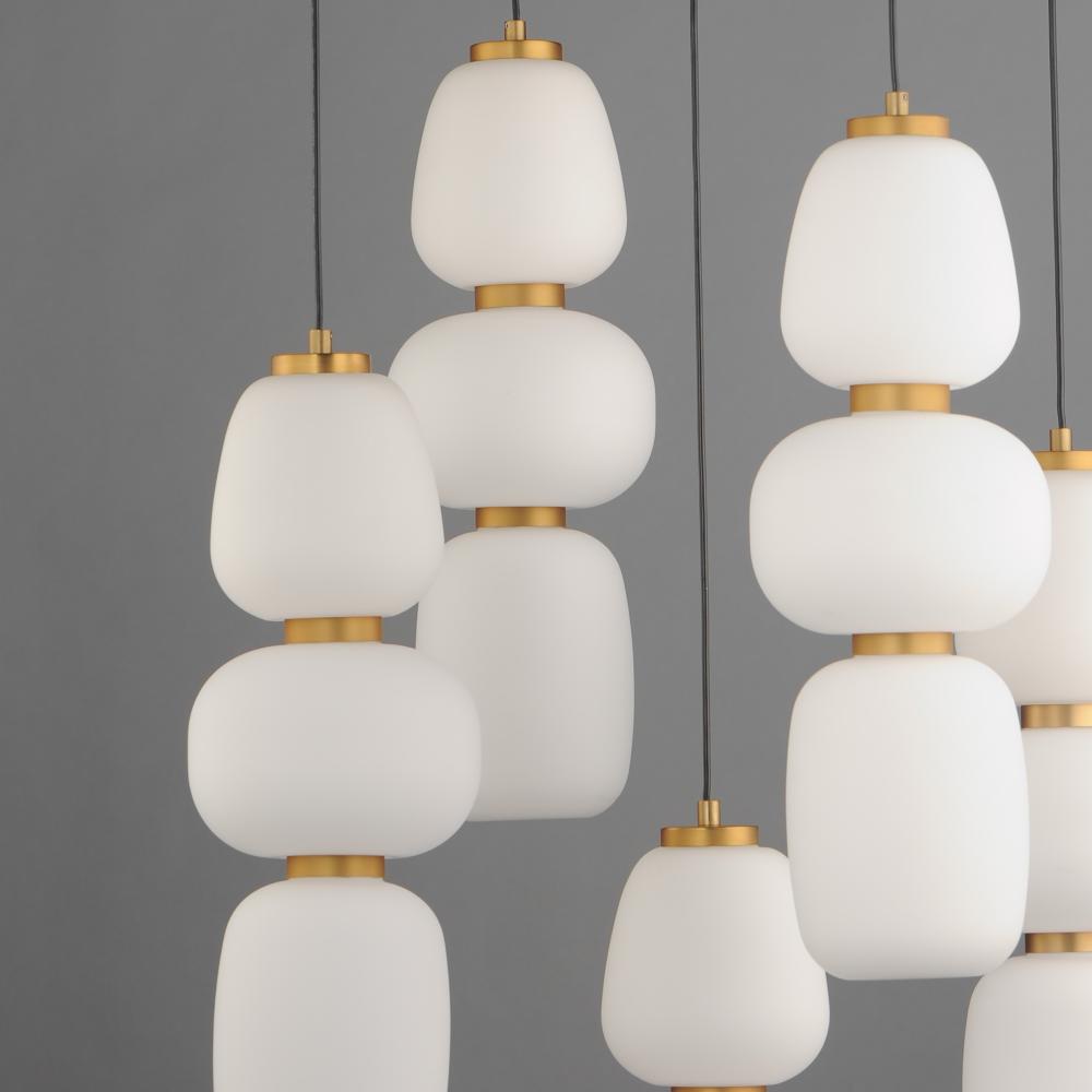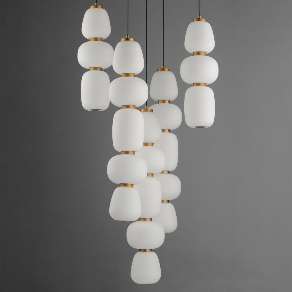 Drawing from the purity and grace of traditional Japanese lanterns, the Soji collection evokes a quiet sophistication through timeless form and thoughtful contrast. Sculpted Satin White glass diffuses a warm, inviting glow while suspended within bold two-t