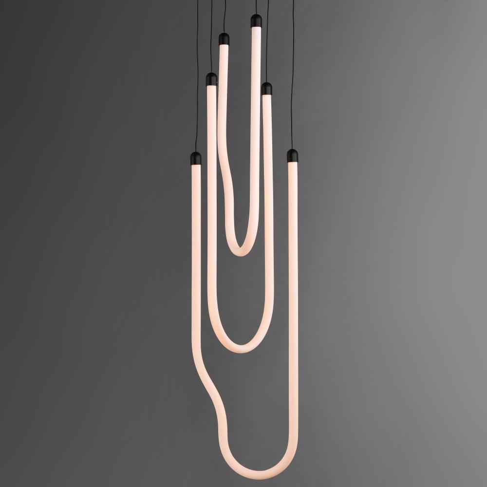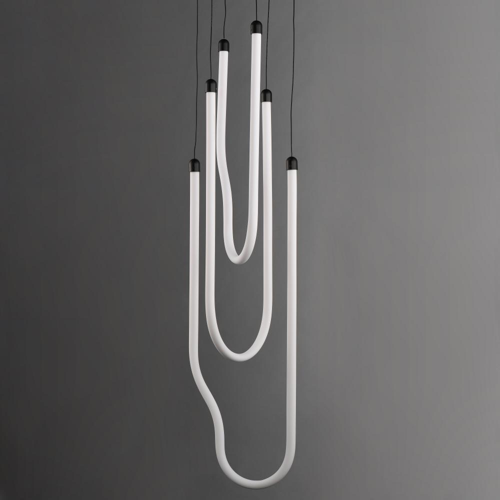 Sweeping matte white acrylic tubes encase an omnidirectional LED light source, arranged in abstract configurations inspired by solar flares. Minimal in composition yet dramatic in form, the Soleil collection offers a striking lighting solution. Available i