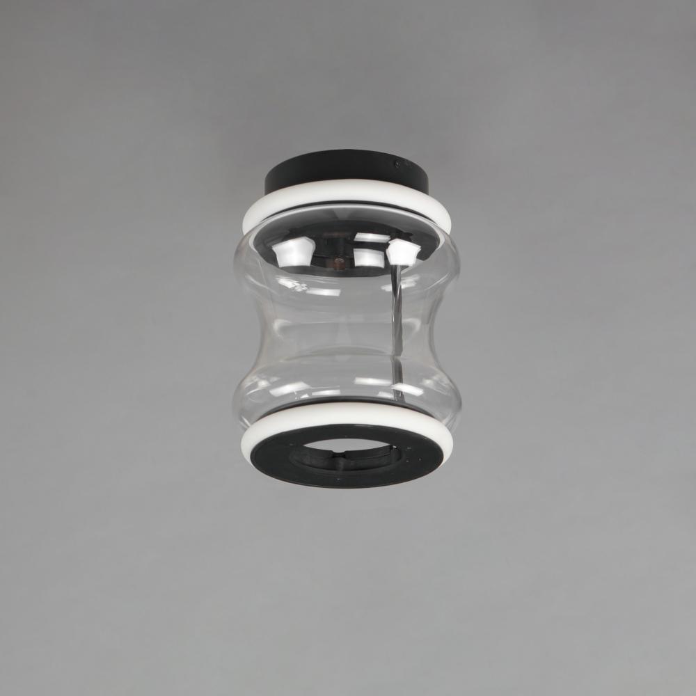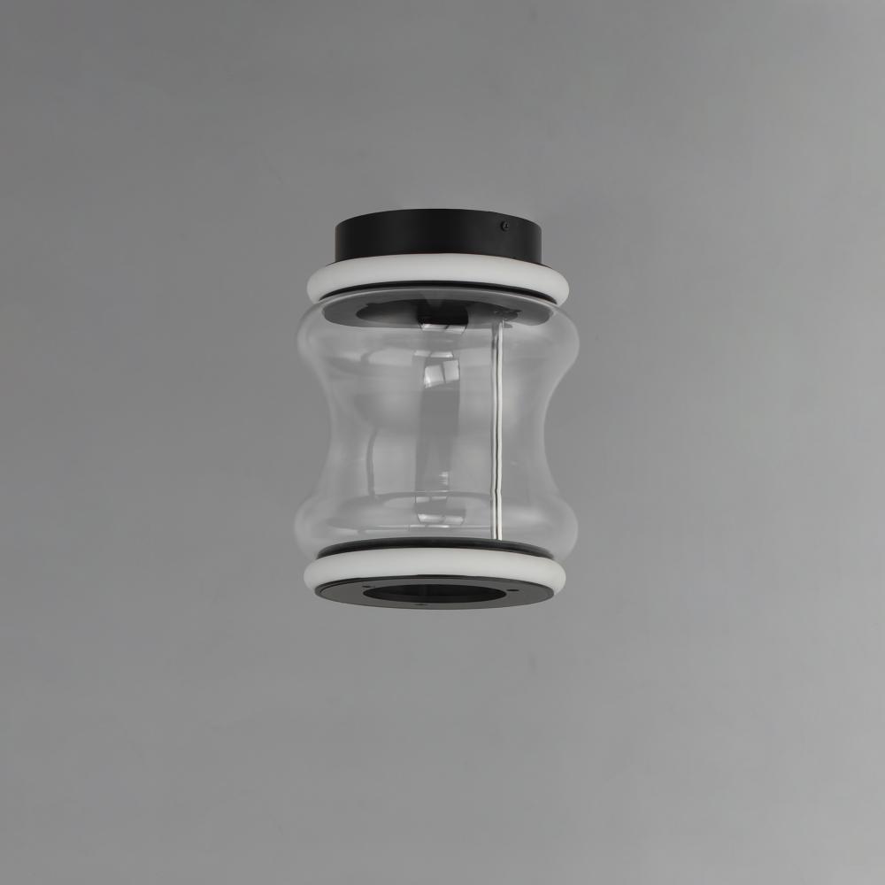 Segmented by bright LED rings finished in Matte Black, glass shades of an hourglass shape are combined into various configurations. The hand-blown glass is entirely transparent and varies in size creating an undulating pattern. All together, the series inc
