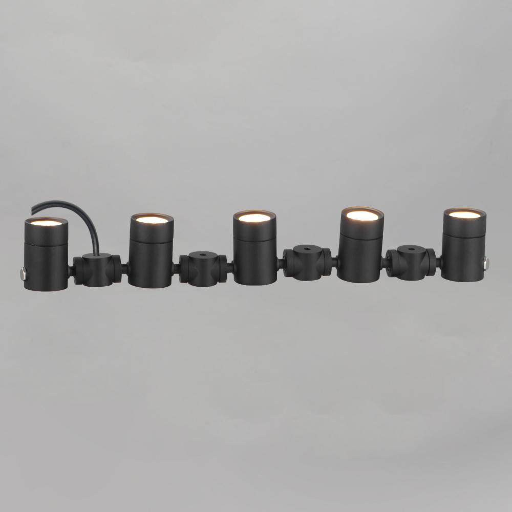 LED spot light modules are connected with rotating joints designed to strap along vegetation and posts. Available in groupings of three, five, and eight, each section is supplied with a fabric strap to easily wrap the products around various structures. Th