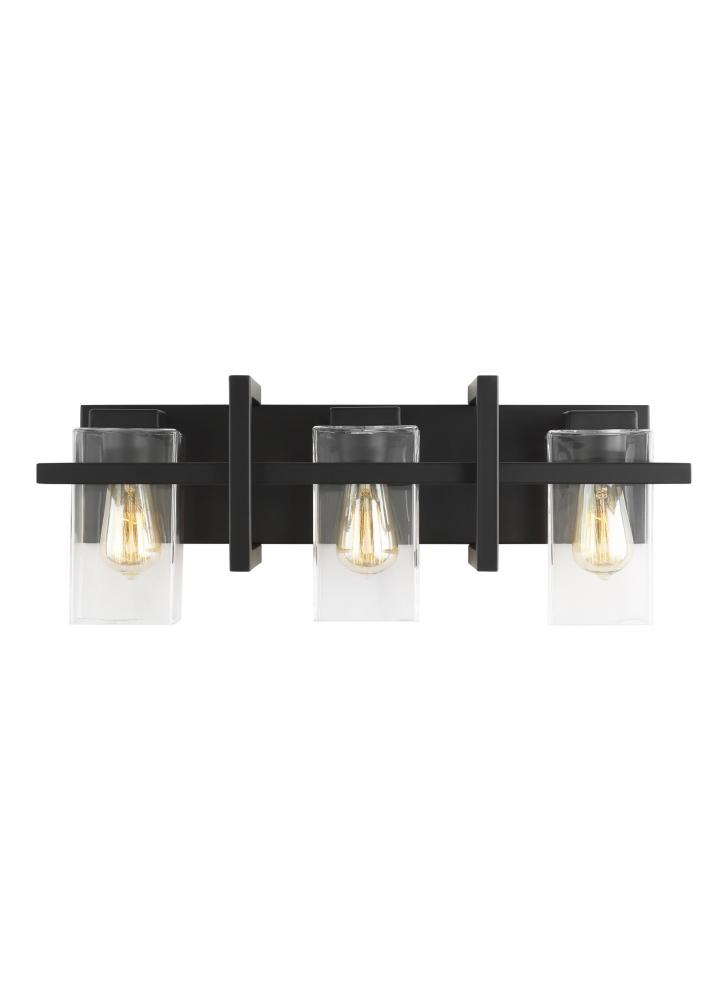 The Mitte three light vanity fixture in midnight black offers shadow-free lighting in your powder room, spa, or master bath room.