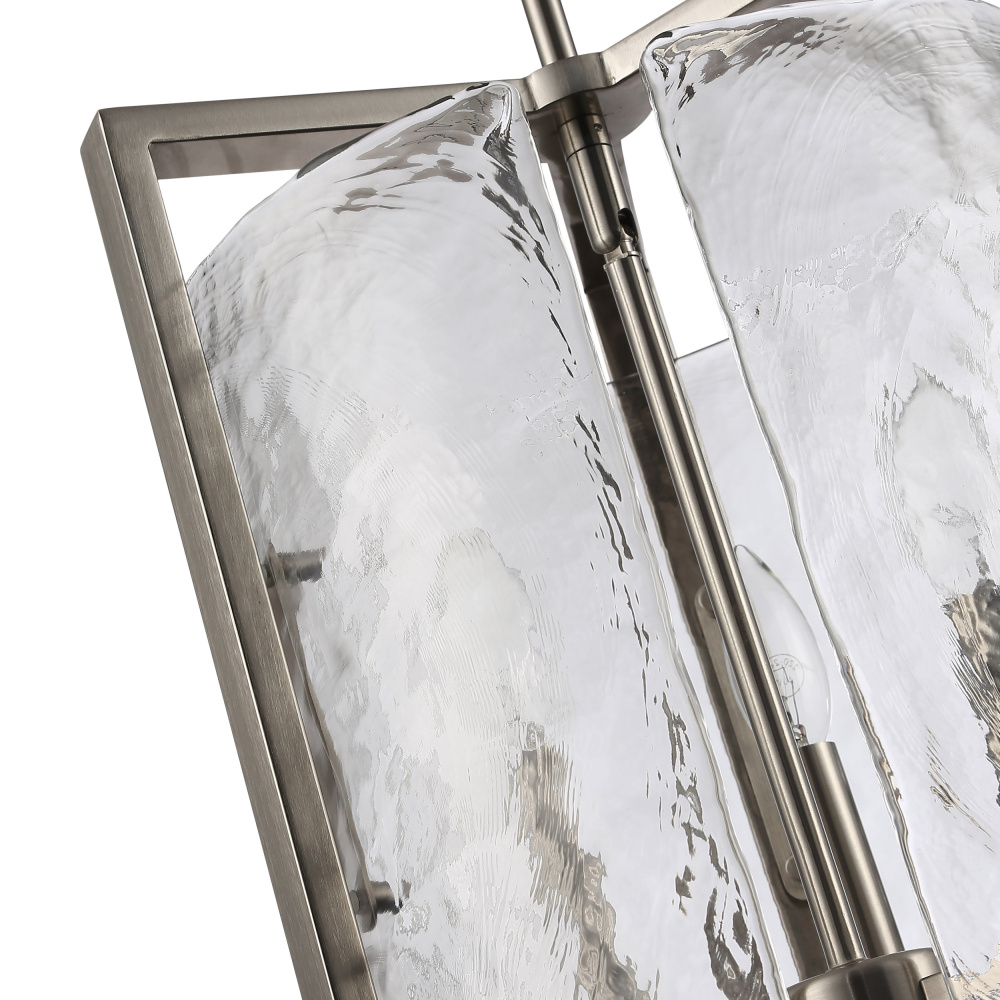 Bring nature-inspired elegance into your home with the Golden Lighting Aenon 3-light Pendant in Pewter. Featuring a glass shade, it creates a serene atmosphere. This glass shade showcases hammered water glass design, creating beautifully distorted light effects that brighten your space. The pewter finish offers a soft, classic alternative to silver tones, adding an understated charm that beautifully diffuses light and complements both traditional and contemporary interiors. Perfect for kitchens, dining rooms, and bedrooms, this pendant is dry location rated for indoor use. Its adjustable height feature (Min: 13.625"- Max: 58.25") allows you to customize the hanging length, and it is compatible with sloped ceilings for versatile installation options. Overall dimensions are 13"W x 13.63"H x 13"D, and it requires three E12 candelabra base bulbs (not included), with a maximum wattage of 60 per bulb. The Aenon Pendant not only serves as a stylish statement piece but showcases quality craftsmanship that transforms your living spaces with elegance and artistry.