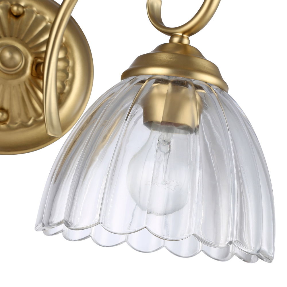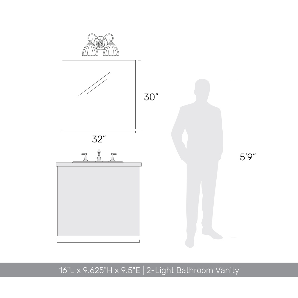 Bring glamorous elegance into your home with the Golden Lighting Audra 2-light Vanity in Brushed Champagne Brass. Featuring glass shades and a brushed champagne brass frame, it creates a welcoming atmosphere. The clear glass shades provide brilliant, unobstructed light, complementing a variety of decor styles. The elegant brushed champagne brass finish offers a refined texture and soft satin sheen, perfect for adding a touch of quiet luxury to your space. Suitable for damp locations like bathrooms and covered porches, this vanity light seamlessly combines style and practicality. Overall dimensions are 16"W x 9.63"H x 9.5"D, requiring 2 E26 Medium base bulbs (not included), with a maximum wattage of 60 per bulb. Experience the luxury and quality of Golden Lighting with this stunning vanity fixture, designed to elevate your daily routine.