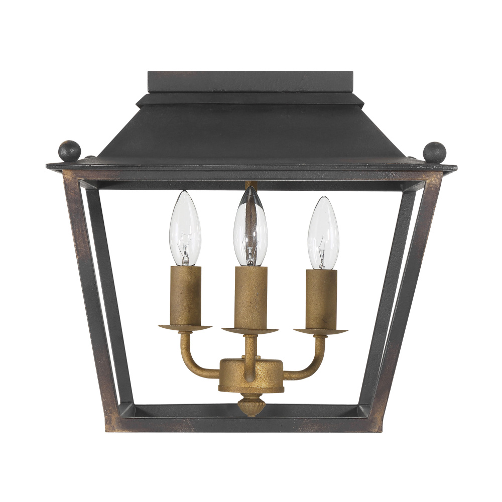 Golden Lighting Christoff 3-light Flush Mount in Antique Black Iron