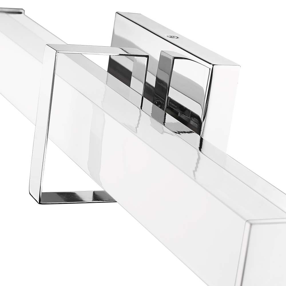 Bring modern elegance into your home with the Golden Lighting Elon Integrated LED 19in Vanity in Chrome. Featuring an acrylic shade and a polished chrome frame, it creates a welcoming atmosphere. This acrylic shade is beautifully designed to diffuse light evenly for a soft, glare-free glow, perfectly suited for any contemporary space. The polished chrome finish reflects light beautifully, adding a touch of sophistication and maximizing brightness in your bathroom. Damp Location Rated, it is suitable for covered and semi-enclosed spaces like bathrooms and laundry rooms. Experience an energy-efficient lighting solution with integrated LED technology providing 1750 lumens. Overall Dimensions: 19"W x 4.75"H x 3.75"D. Elevate your bathroom with functional style and the exceptional quality of Golden Lighting.