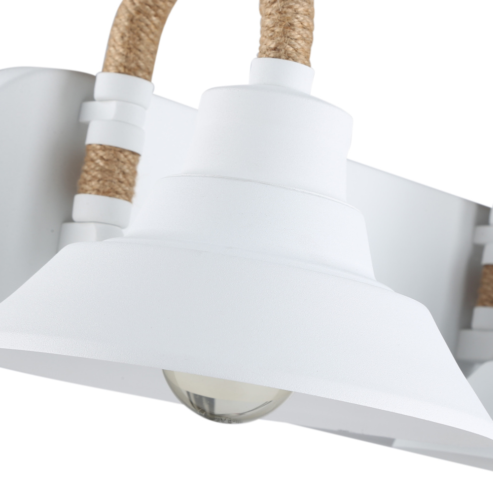 Bring a fresh, coastal charm into your home with the Golden Lighting Journey 2-light Vanity in Natural White. Featuring a metal shade and a Natural White frame, it creates a bright and inviting atmosphere. The metal shade complements the light beautifully, enhancing the soft, neutral white color and allowing for an elegant light effect. The natural white finish presents a textured, organic feel that moves beyond simple painted looks, making it a versatile choice for various styles. Perfect for brightening up bathrooms, this damp-rated vanity light provides flattering task illumination. It requires 2 E26 Medium base bulbs (not included) with a maximum wattage of 100, and its overall dimensions are 17"W x 7.63"H x 9.38"D. The Golden Lighting Journey vanity light is an exquisite blend of functionality and style, bringing quality and warmth to any space.