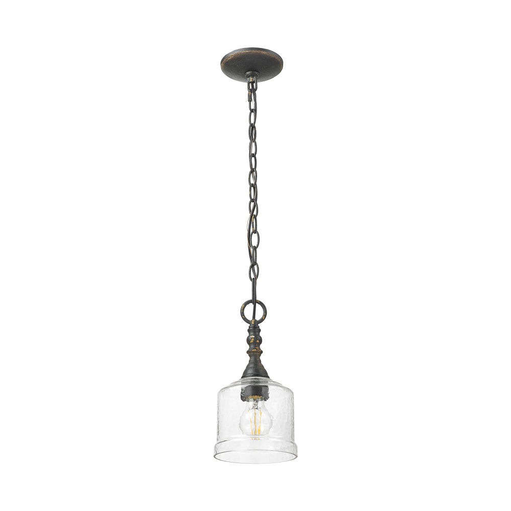 0806-M1L ABI-HWG - Golden Lighting Keating 1-light Pendant in Antique Black Iron and Hammered Water Glass